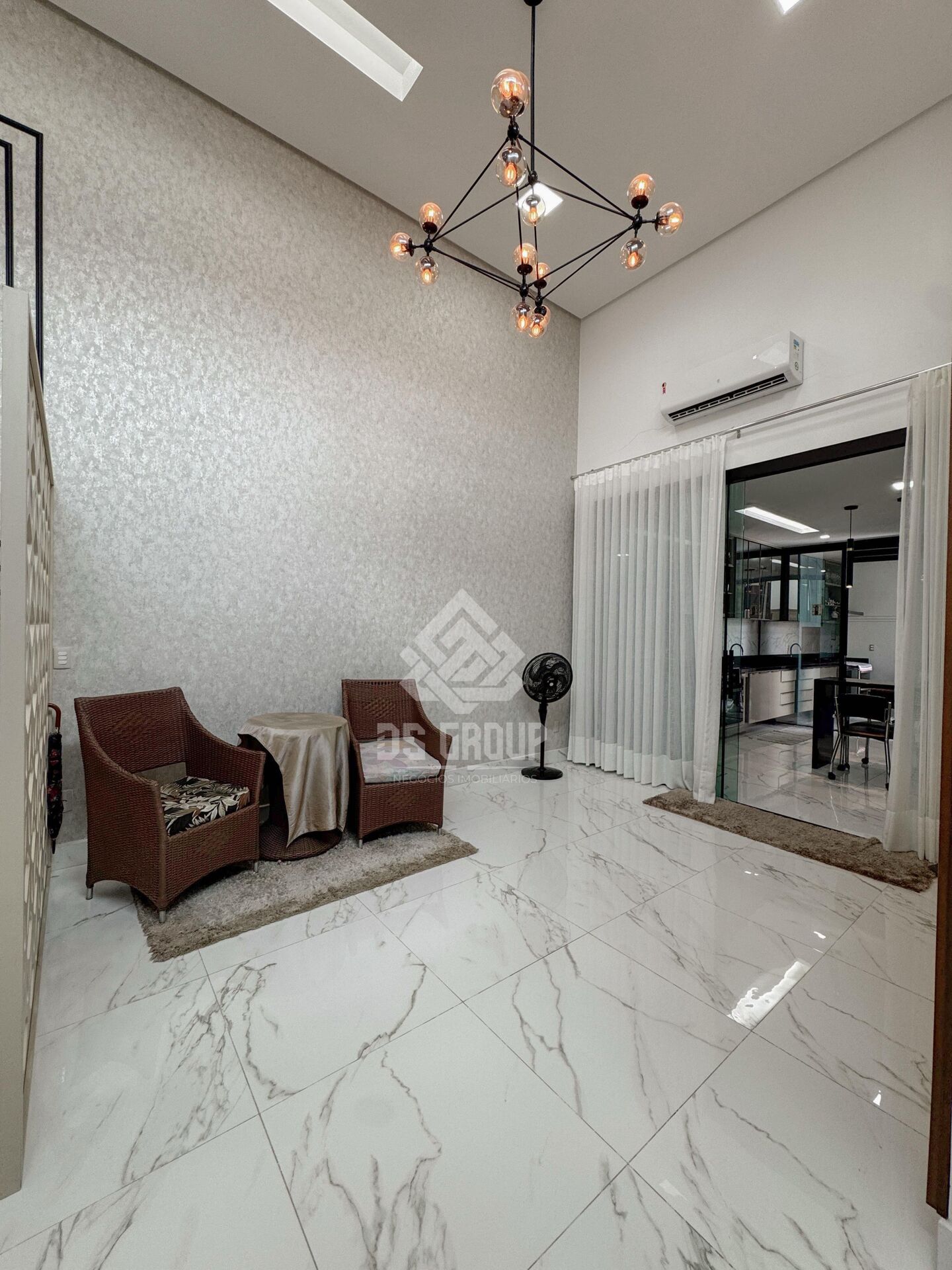 ✨ Sala ampla com 2 ambientes e pé direito elevado